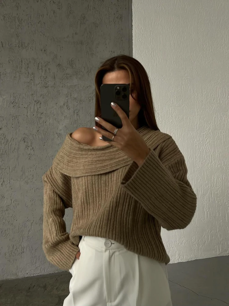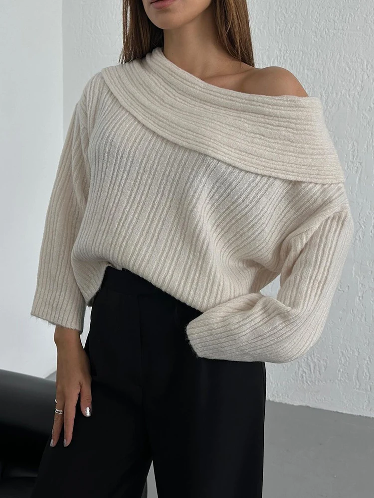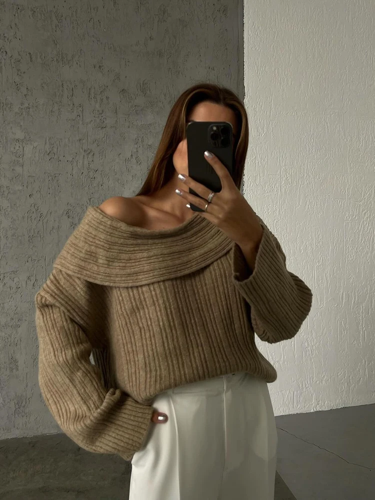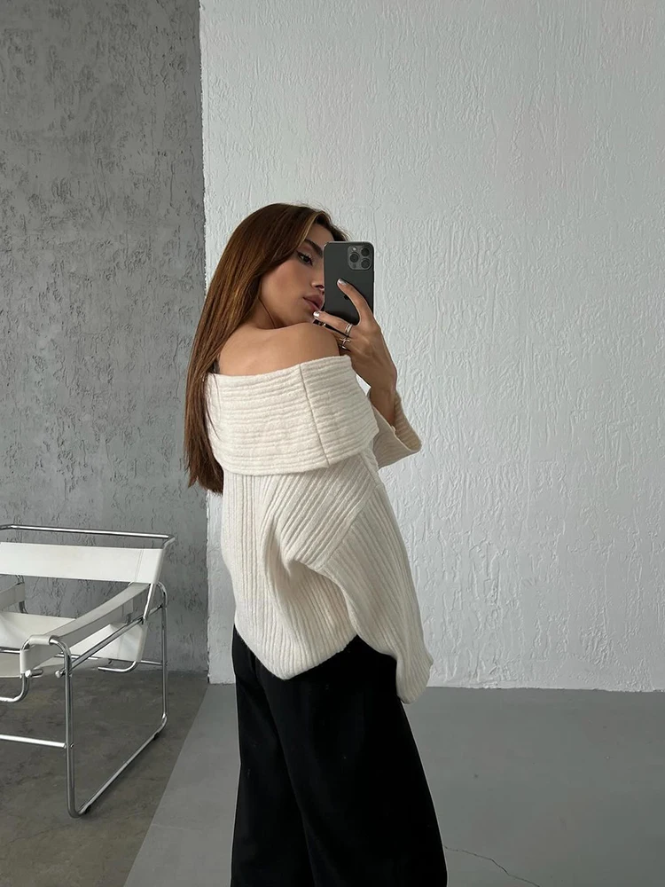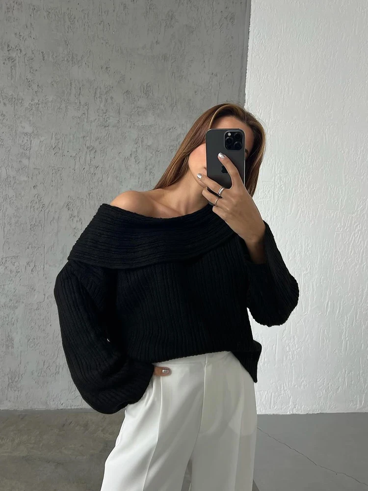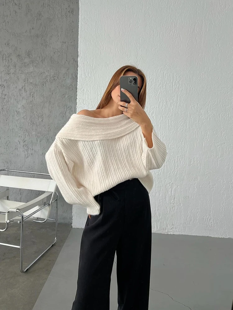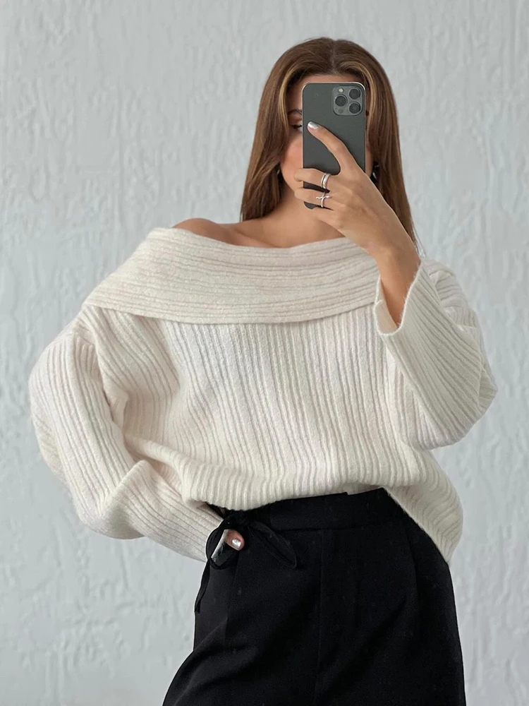 Fashion Off Shouler Loose Sweaters Women Autumn Winter Streetwear Long Sleeve Chic Jumpers Office Lady Knitted Pullover Tops