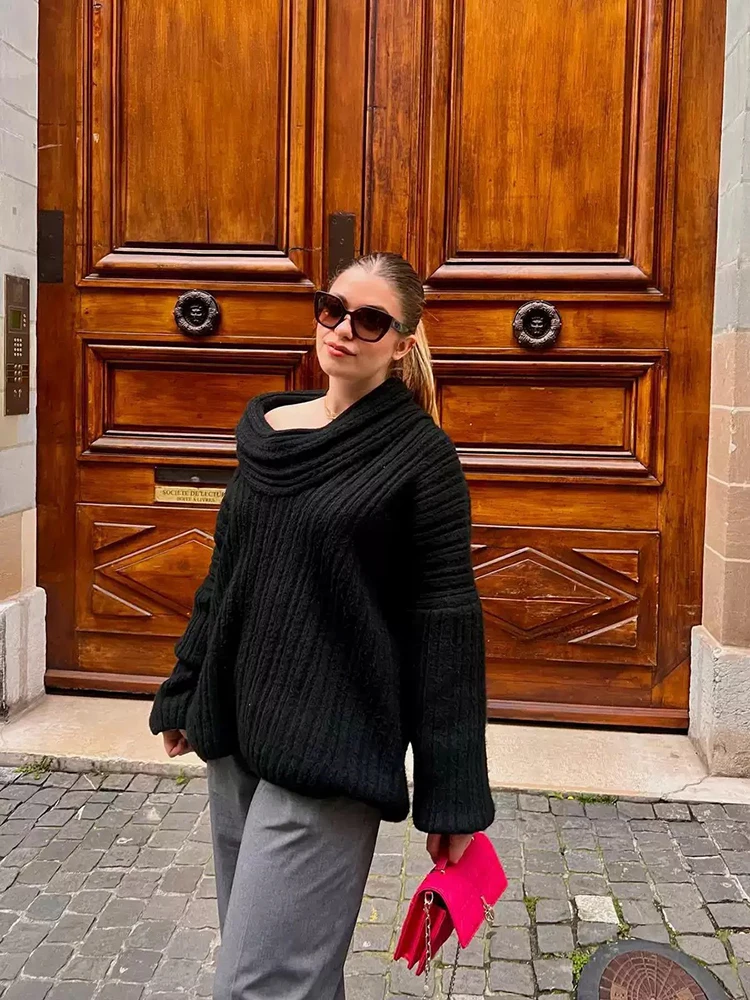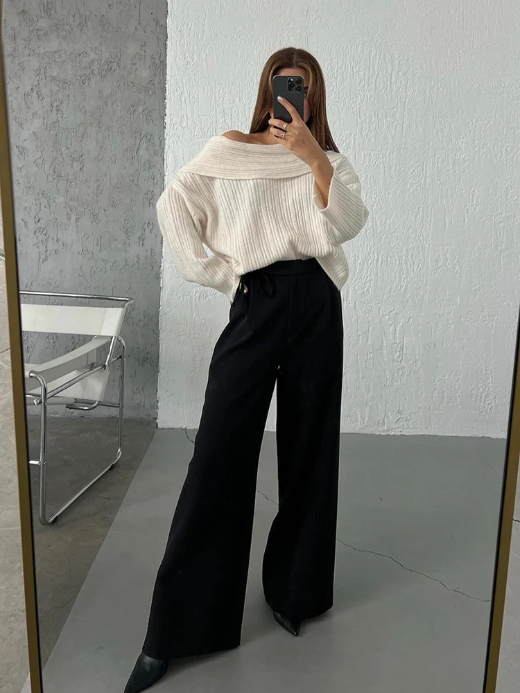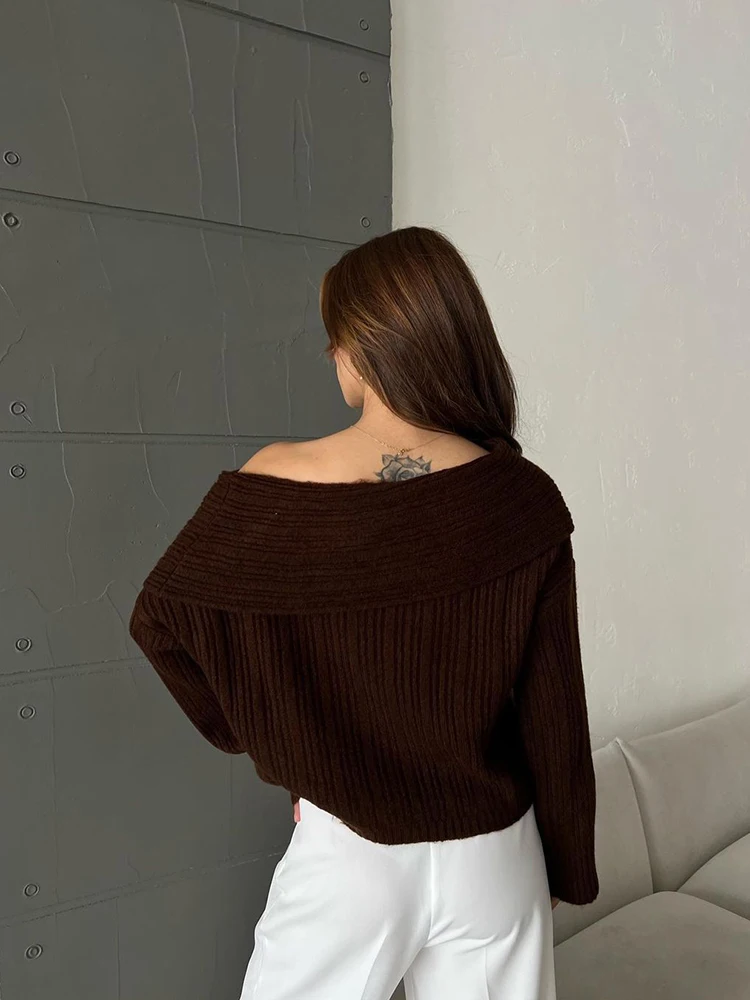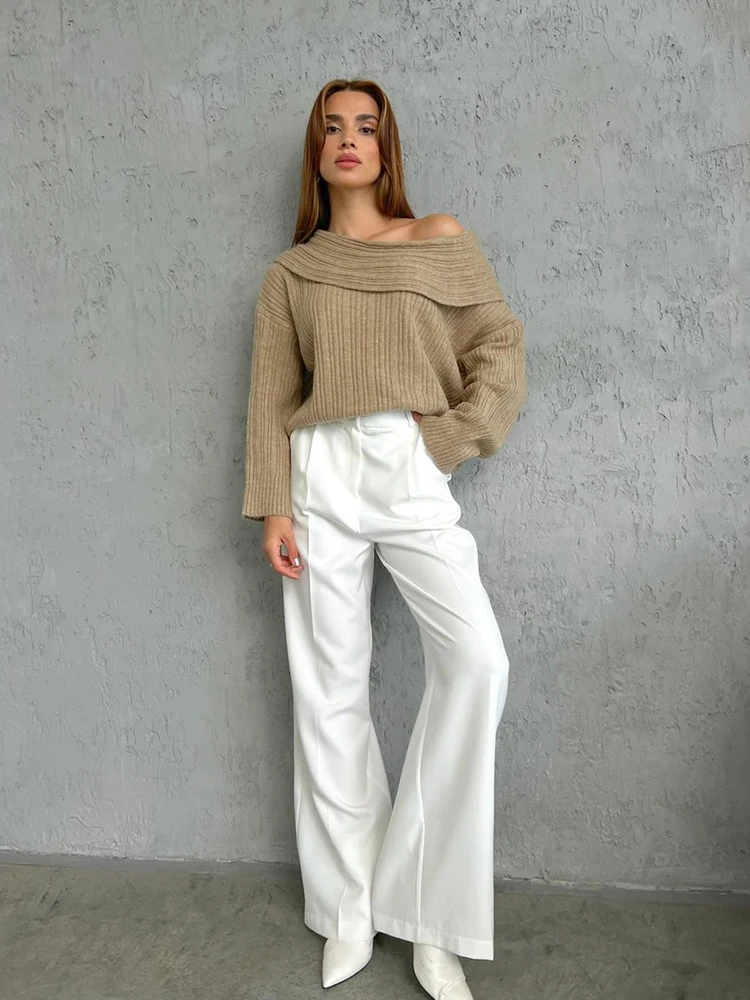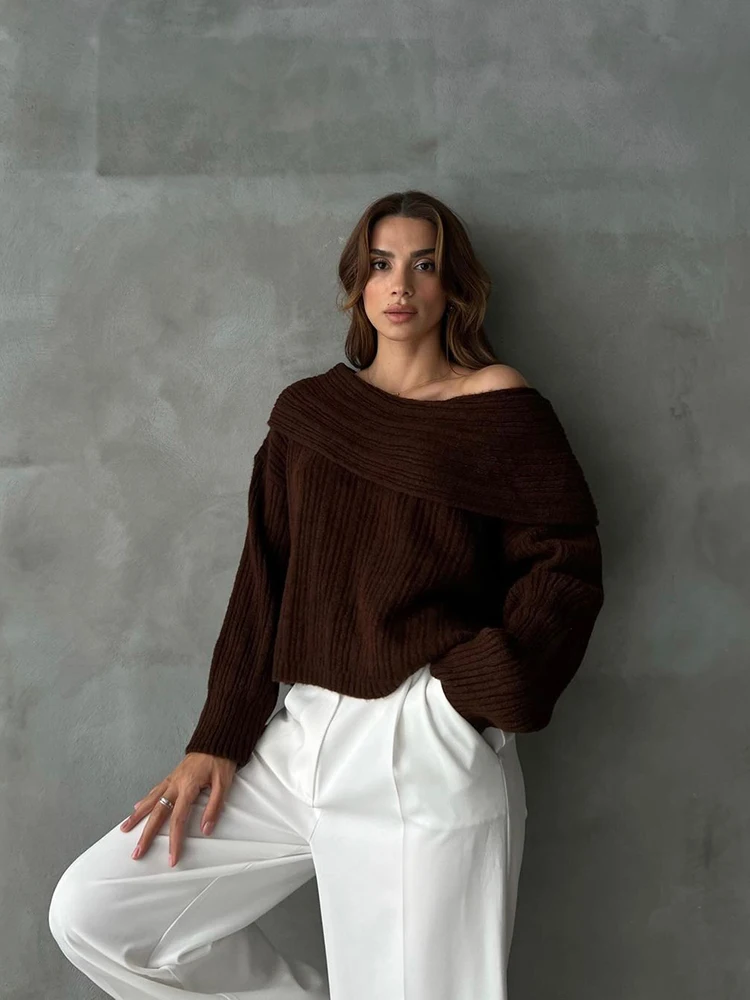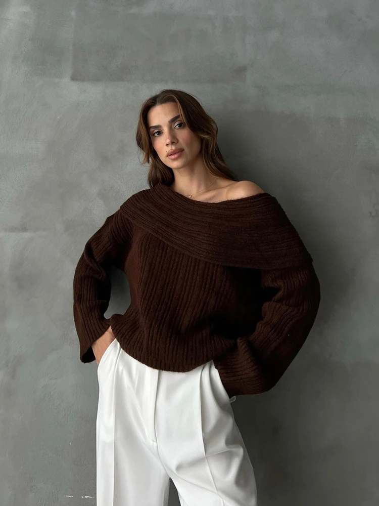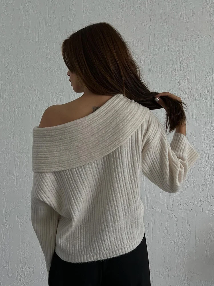 Fashion Off Shouler Loose Sweaters Women Autumn Winter Streetwear Long Sleeve Chic Jumpers Office Lady Knitted Pullover Tops