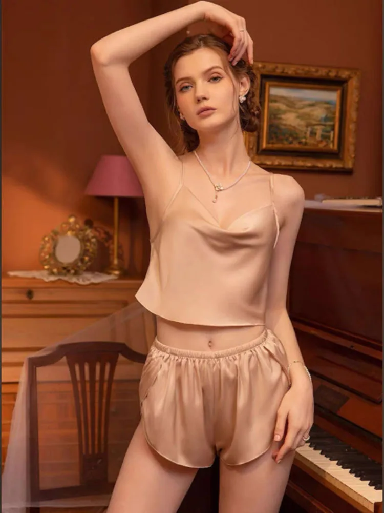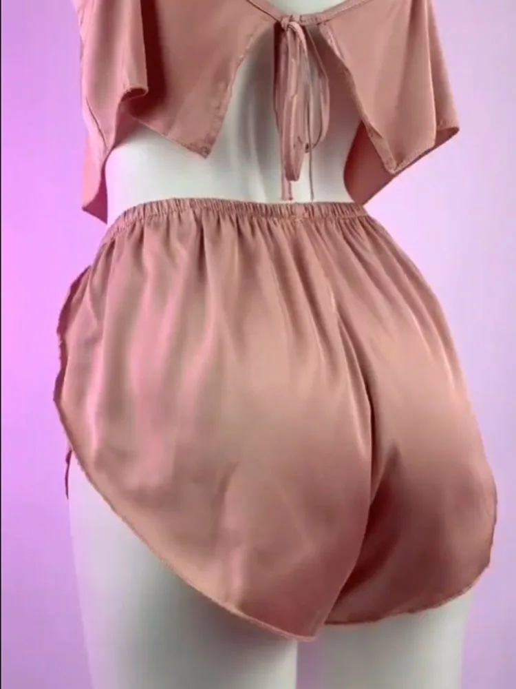 This lace-up ice silk pajama set boasts a sexy sleeveless and backless design, perfect for adding a touch of allure to your bedtime routine.